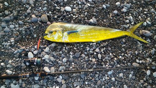 こんにちは❗Nさんからシイラ釣ったよってそれでは出発❗釣れてる所は知ってるけどNさんも行かない四時頃もう既にNさんの車と県外ナンバー後は地元釣り師だけでまぁまぁ空いてるこの間から狙ってたもっと空いてる所へヒラスズキを狙いながらランガンシオが…